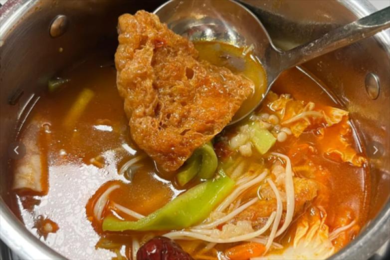 传统五味香锅是指麻、辣、酱、鲜、香,胥半荟蟹逅小火锅经过长达三年的研发,在锅底中加入了补和脆,让美味和食疗养生进行融合。