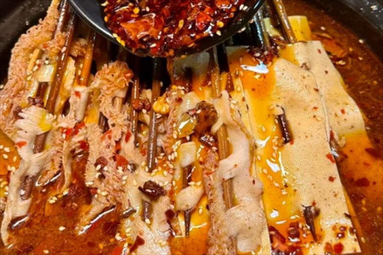 林家烧烤涮牛肚,创开锅撒料,使涮菜不仅香辣浓郁、爽口、口感更好,香辣、三鲜……入口留香,流连忘返;汤更是一绝,酱料考究,以原汁上好煮汤为原料,可在涮锅后直接享用。